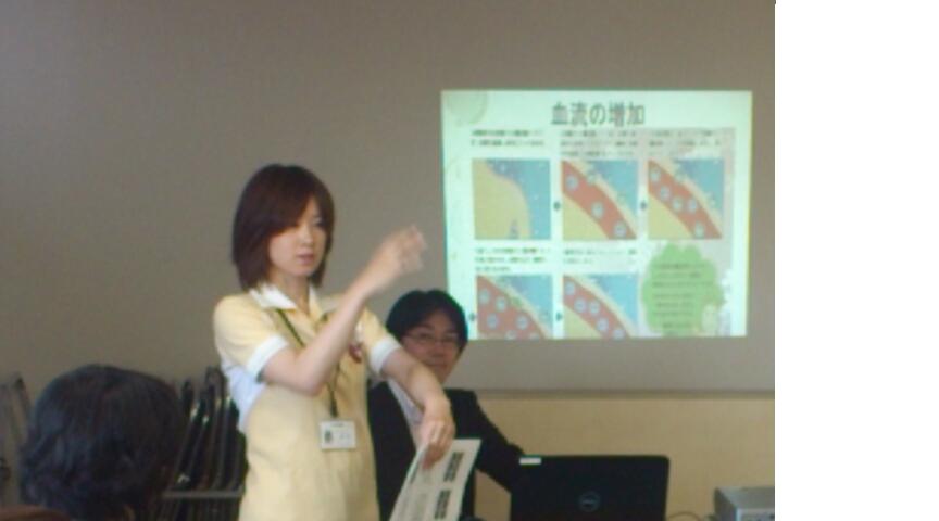 葛西☆デモ入浴 2013年6月3日 / カテゴリー:ラック葛西 5月24日にデモ入浴を行いました! たくさんのケアマネさんが集まって下さった中、訪問入浴の流れを説明している軸屋さん(小さいので分かりずらいですが…笑)と、↓ 炭酸泉の効果を説明している船山さん☆↓ 実際に皆さんで炭酸泉に手を入れて体感していただいている様子(^^)ノ↓ 感想として、「炭酸泉にこんな効果があったんだ!」「身体がポカポカしてきた~」「手を入れてた部分だけ赤くなって違いがよく分かる」等、炭酸泉に興味をもっていただけたようです(*^_^*)