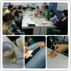 次にハサミを使い飴や菓子の袋を片手で開けてみました。