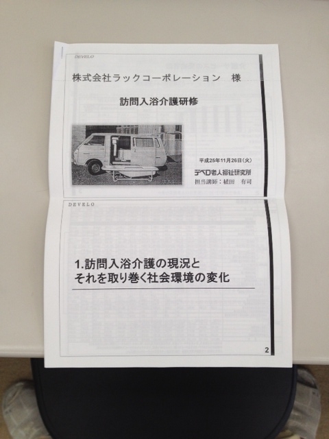 11月26日(火)19時~20時30分で訪問入浴の研修が本社研修室にて、デべロの植田講師をお招きして行われました。