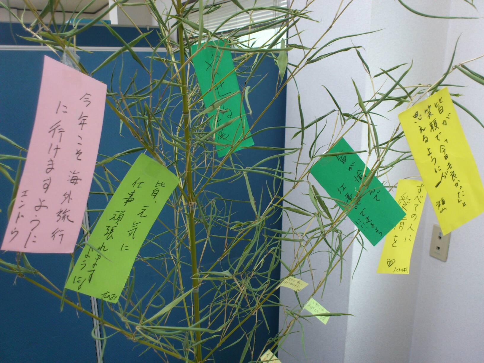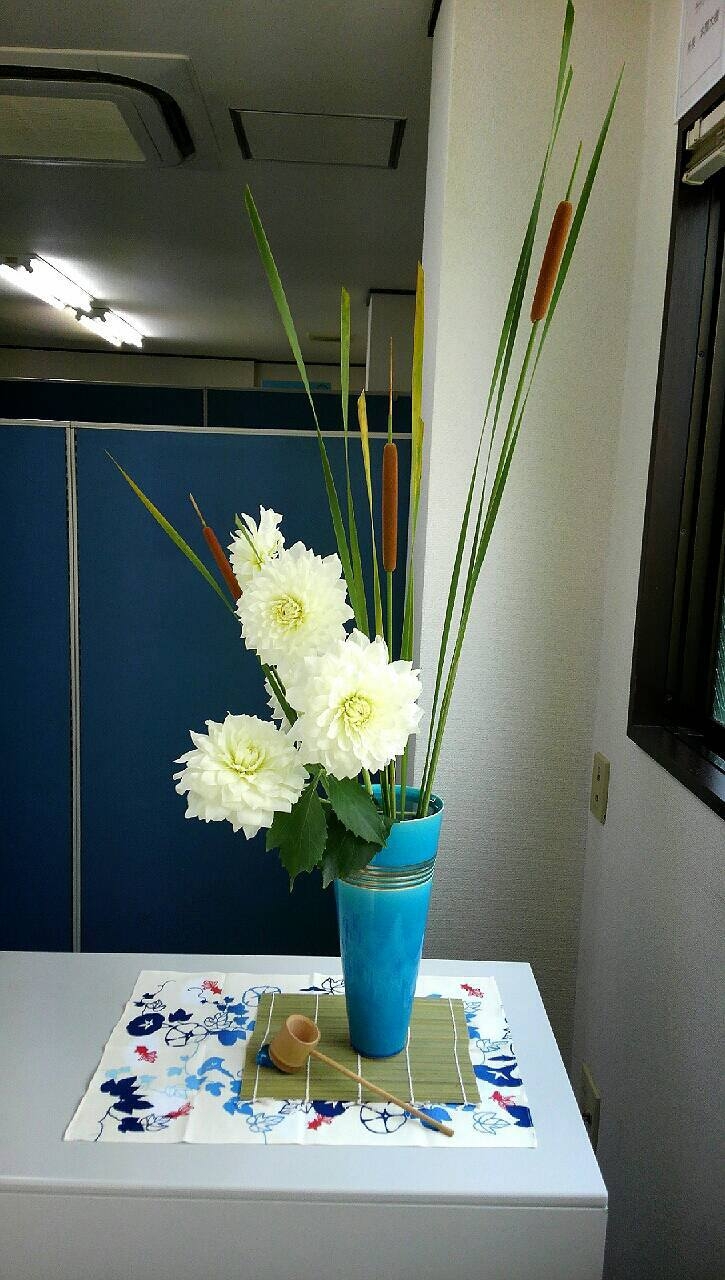 7月の小岩 2014年7月17日 / カテゴリー:ラック小岩 こんにちは~! 7月は『七夕』という事でラック小岩に来て下さった方々で 願い事を書いた短冊を笹の葉に飾りました~♪ 皆さんの願い事が叶いますように・・・☆★ そして、今月の花は・・・『姫ガマ』と『ダリア』です^^ 今回はEヘルパーが『涼しさ』をイメージして生けてくれました♪ これから、ますます暑い日が続きますが こまめに水分補給をし夏を乗り切りましょう♪♪♪