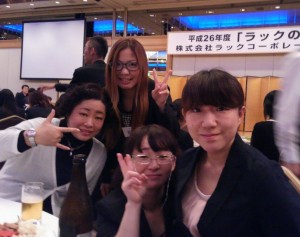 ラックの会 ★ 小岩 2014年11月10日 / カテゴリー:ラック小岩 今年もやって参りました~♪ 日頃の感謝を込め内部スタッフ全員参加しました(・o・)❤ 普段、会う事のない他の営業所の方々にも会えましたし 今年もNヘルパーが表彰されましたー!!! 3冠達成 ❤ おめでとうございます ★ そして、 期 待 の ヘ ル パ ー !(^^)! 『 2人の活躍を楽しみにしていま~す♪ 』 これからも笑顔の多いラック小岩にしたいと思います★☆★