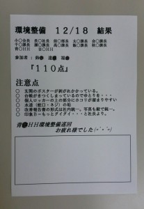環境整備の結果としましては・・・!!! 満点とれなかったです・・・