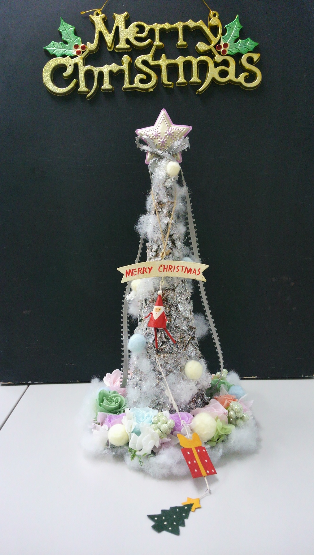 そして、T主任が手作りしたツリーも一緒に玄関に飾っています。