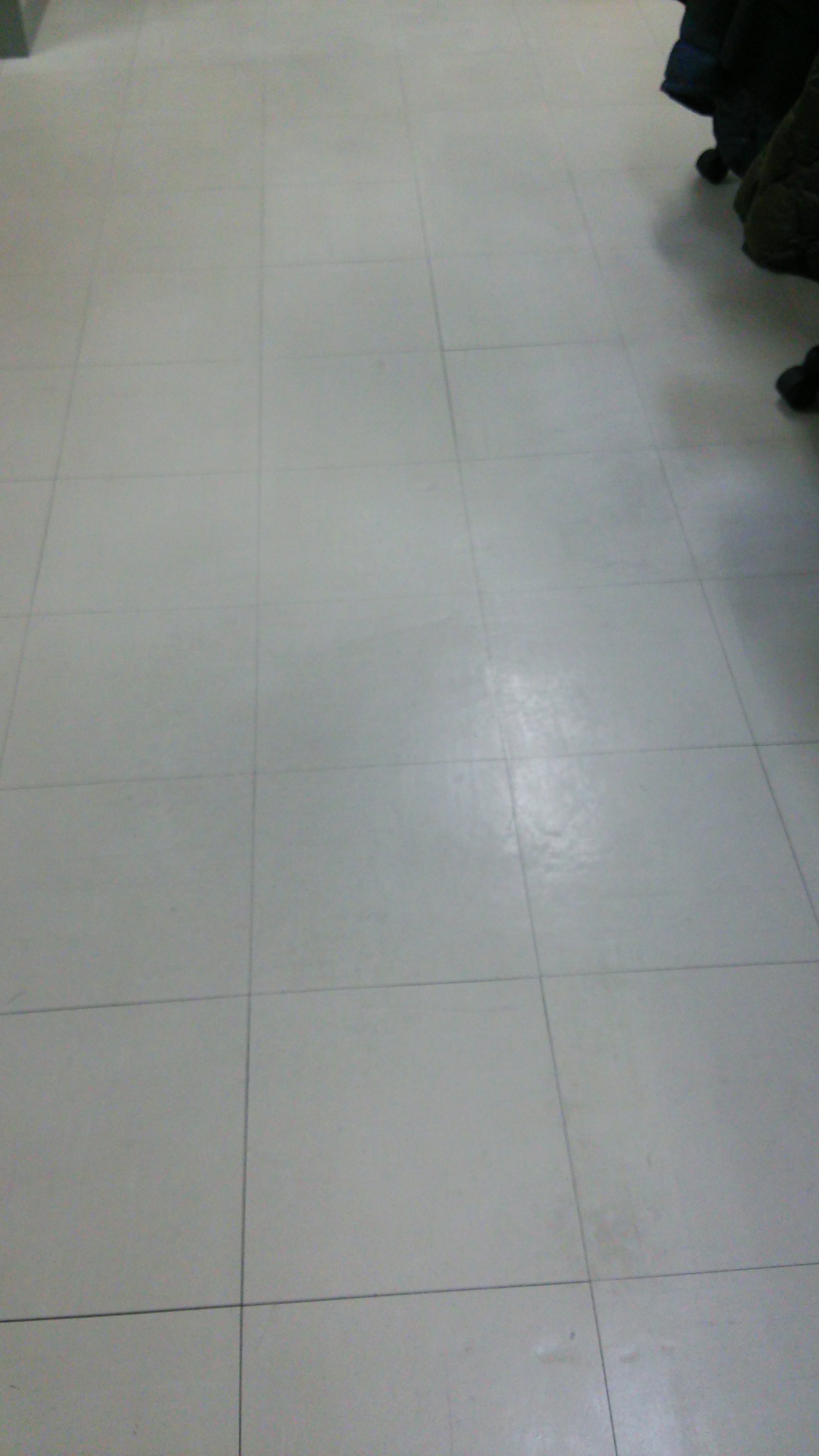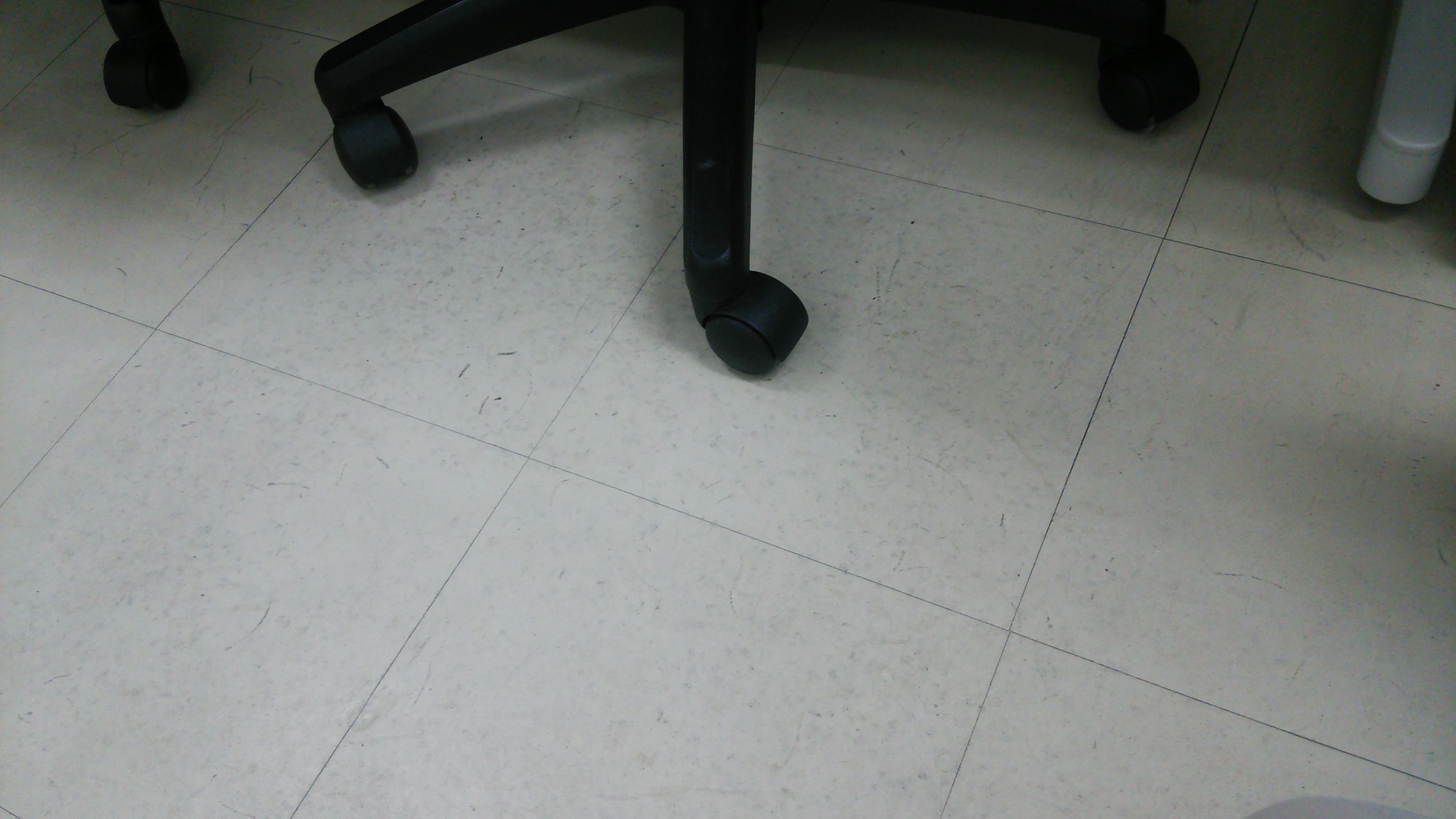 江戸川営業所の床は絨毯も何もない真っ白な床なので、すぐに椅子とこすれて黒くなってしまいます。