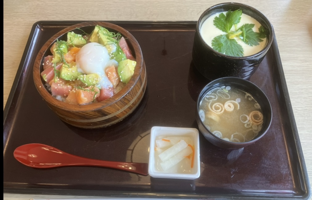 マグロサーモンアボカド丼とジャンボ茶碗蒸しです(●´ω`●)