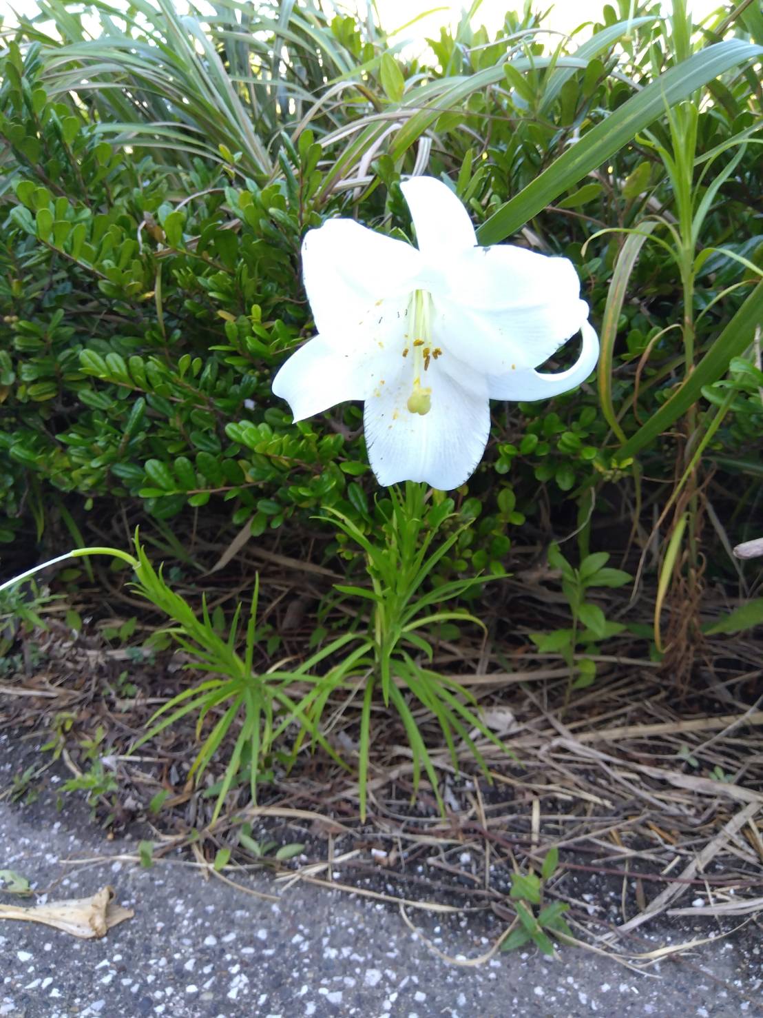 一輪の花🌼 2023年8月20日 / カテゴリー:ラック金町 皆さん、こんにちは~ 居宅のmachikoです(^_-)-☆ 先日、歩道で。。。 一輪の花を見つけました。 調べると「テッポウユリ」 何だか・・・とても癒されました(*´艸`*) 花言葉は「純潔」「威厳」「甘美」の3つだそうです。 まるでワタクシみたい・・・(美意識過剰中↑) 癒してくれて感謝感謝!!!(*^▽^*)