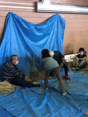 脱穀についてレクチャーしてるどこかから連れてきたオジサンたちも楽しそう。