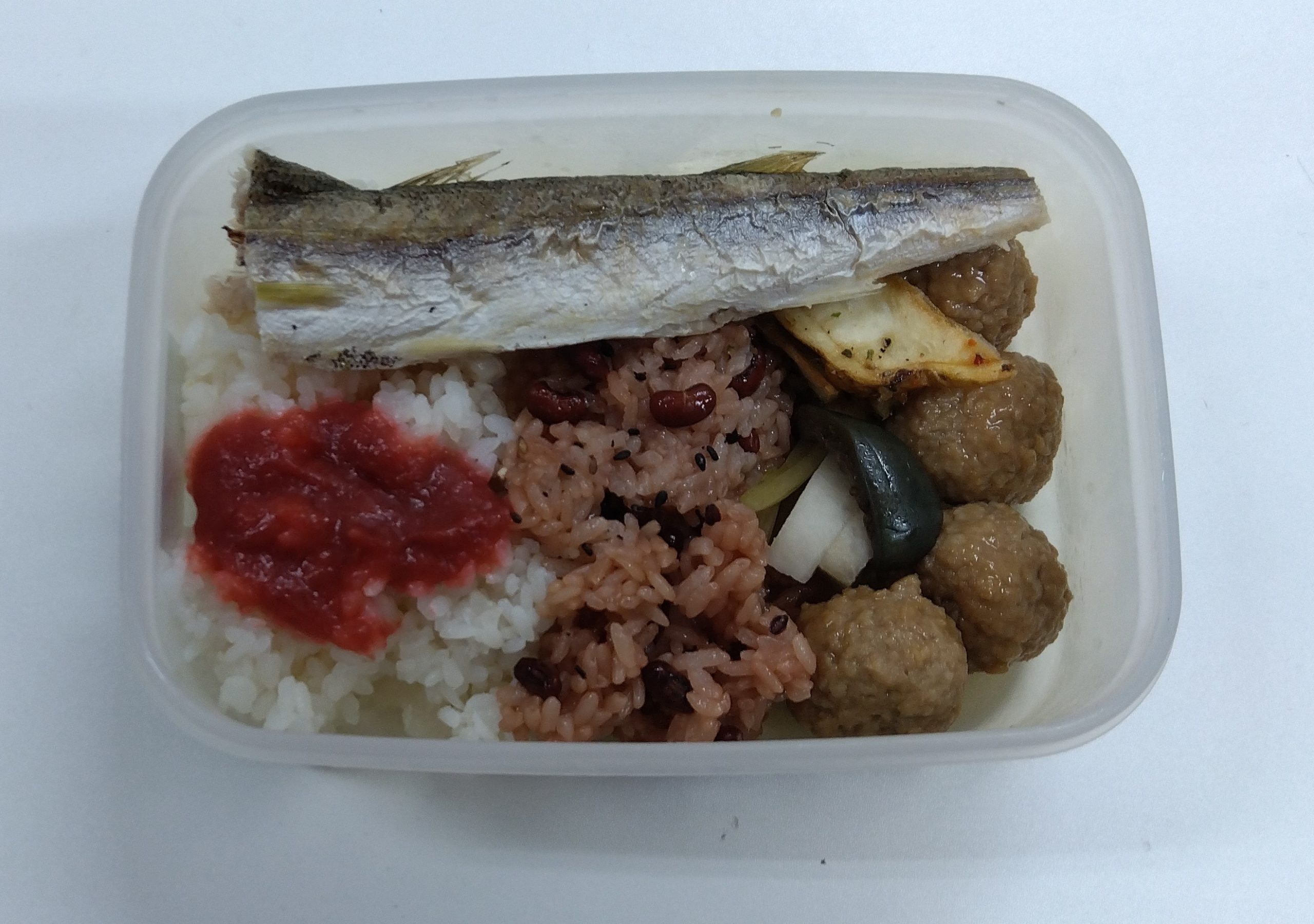 女子力なしのお弁当㊳ 2023年11月15日 / カテゴリー:ラック金町 皆さ~ん! こんにちは~ 居宅のmachikoですよ~ 久しぶりの投稿です。。。 今回のSケアマネのお弁当は・・・・・・・・・・・・ こ・ち・ら・・・ ん❔ ご飯が少し足りなくて隣の家のおばちゃんに頂いたお赤飯(手作り💛)と・・・ サンマの半身❔ と肉団子ちゃん。。。 お口直しに大根とナスのぬか漬け(手作り🎵) お魚ちゃんが入っているなんて、やっぱり「ワイルドだねぇ」!(^^)!