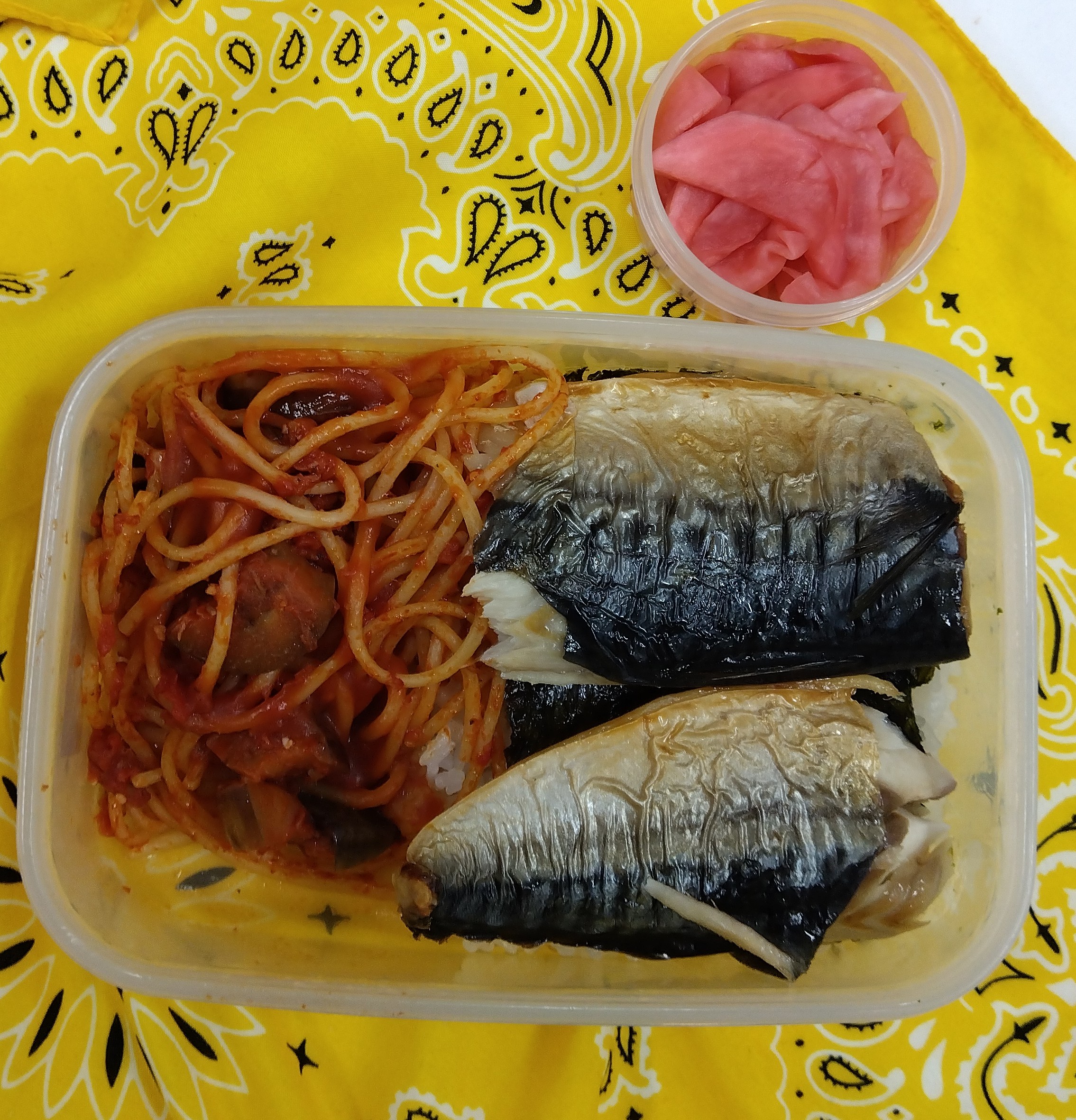 女子力なしのお弁当NO57 2023年12月25日 / カテゴリー:ラック金町 こんにちは~ 居宅のmachikoです(*^^)v 今回は・・・・・ どうだぁぁぁぁぁぁぁぁ!!! 半分、ご飯の上にサバ🐟ちゃん 半分、パスタ🍝 さすがSケアマネですな~ Σ(・□・;)