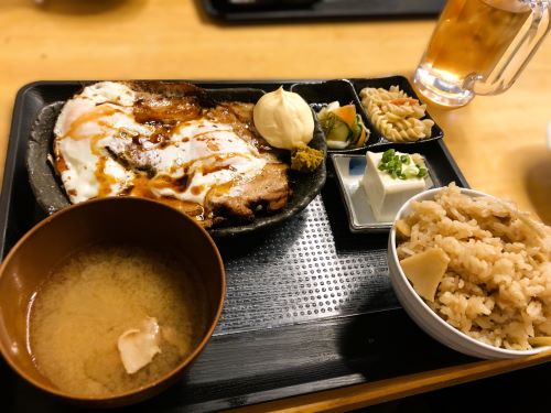 チャーシューエッグ定食。