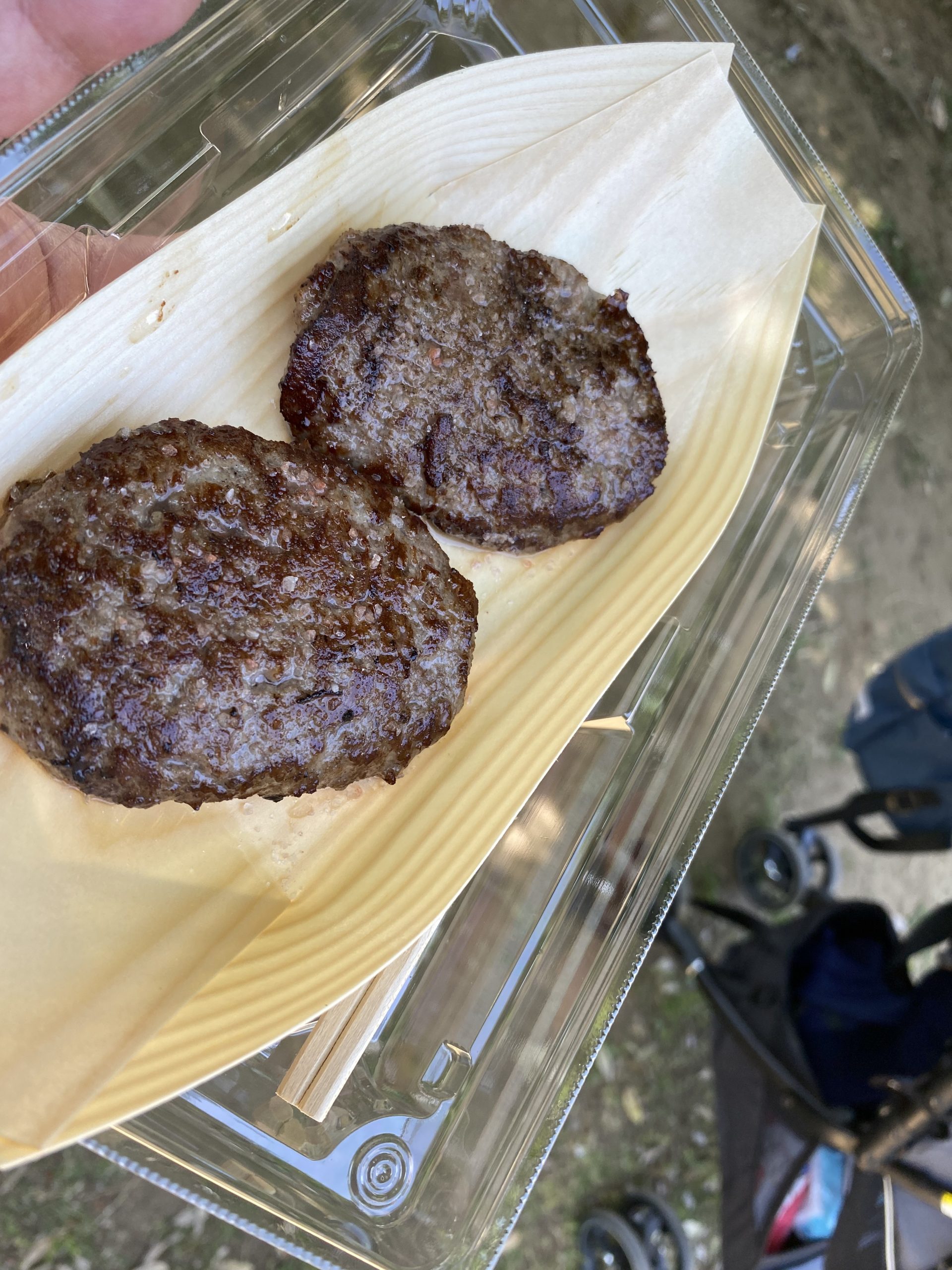 思った以上に混みあっていて、帰る頃には子どもたちも寝る準備万端。一人で肉を捌き、一人焼肉開始です。