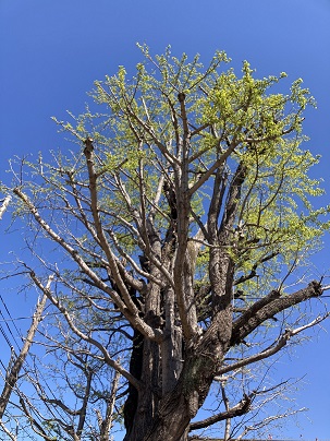 若草現在進行形 2026年4月21日 / カテゴリー:ラックすみだ介護 最近空見てますか?神社の御神木が青葉の時期となりました。桜が終わっり今度は藤ですが、その前に。冬に葉を落とした木々に新しい葉がでてきました。今は少し寂しいけれども、少しずつ増殖中です。 青空に映える緑は美しいです。 お好みの場える風景何ですか?