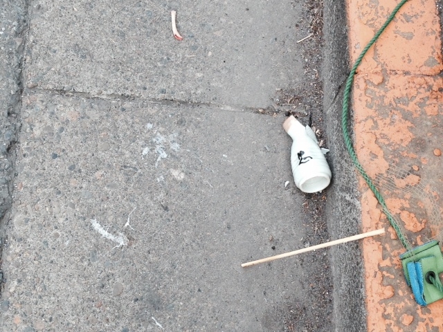 相変わらず道路脇はタバコの吸殻が多く、今回はこんな危険な物もありました。