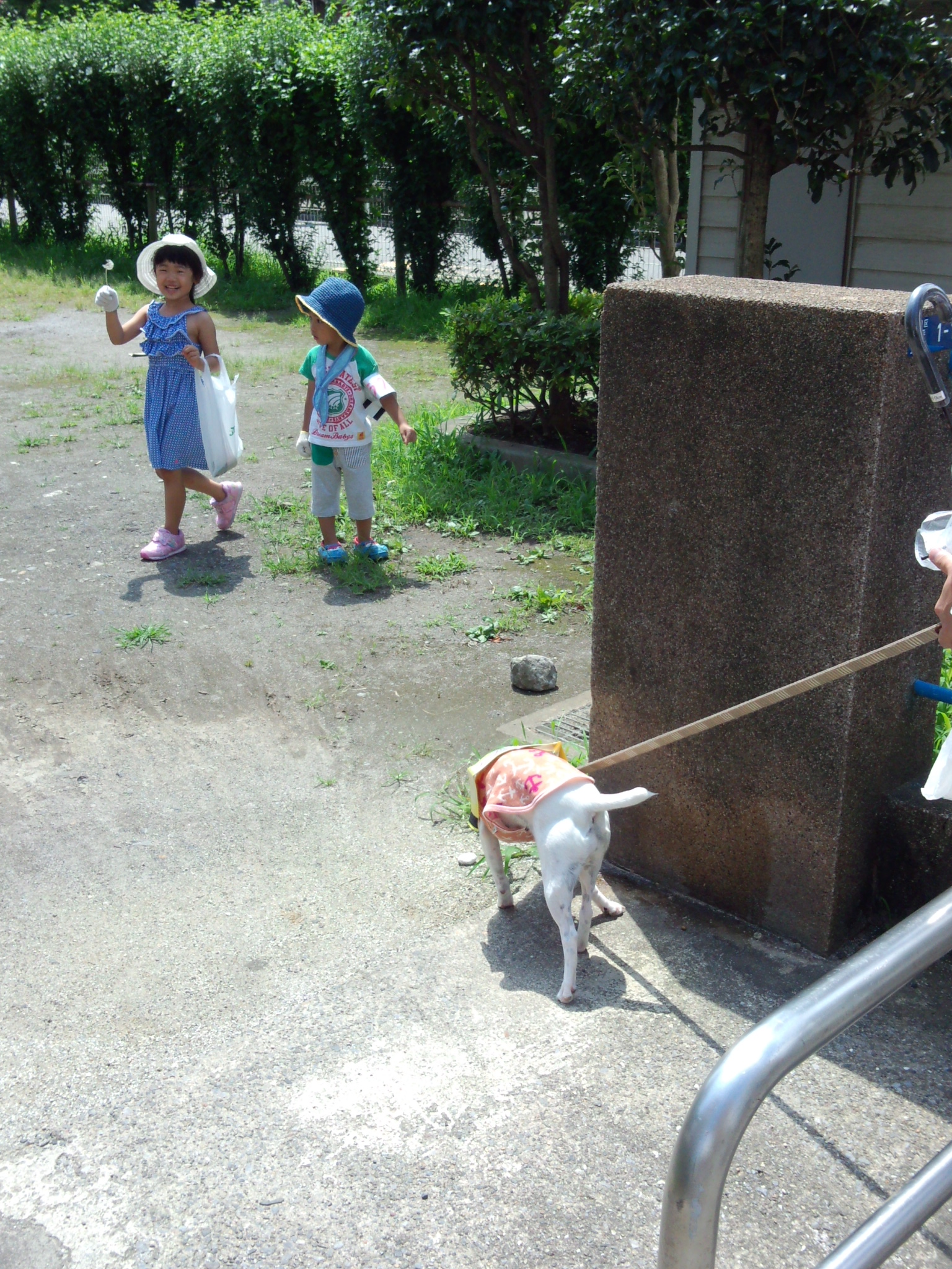 子供+ワンちゃんチームもたんぽぽの綿毛をつんだり、ちょうちょを追いかけ、大人に負けず暑い中頑張りました!