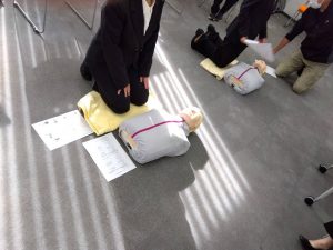それは緊急時の対応についての研修でCPR(心肺蘇生法の研修)を始めました!!