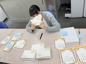 ヘルパーさんへ感謝の気持ちを込めて 2025年10月9日 / カテゴリー:日常あれこれ こんにちは😸 ラックでは11月をヘルパーさんへ感謝を伝える月としています。 今日は経営企画にてヘルパーさん達へ贈るお礼状を心を込めてご用意! いつもサービスに尽力いただき本当にありがとうございます💕 お手元に届くまで今しばらくお待ちください♪