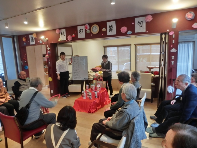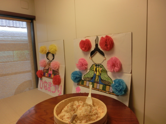 ラックの空ひなまつり☆ 2015年3月9日 / カテゴリー:ラックの空 平井 こんにちは!ラックの空平井です☆ 3月3日(火)ラックの空平井ではひなまつりを行いました!! 今回は☆みなさんでひなま釣りゲームで楽しんで頂き☆ そして!!この日の為にスタッフとご利用者様との共同作業で作った☆お雛様とお内裏様^^ そして☆雛壇です☆ 雛壇は輪投げゲームに変身(=^・^=)結構盛り上がりました! おやつのひしもちゼリーもがんばりましたよ!! これからも空のご利用者様が楽しく元気に過ごせますように♪