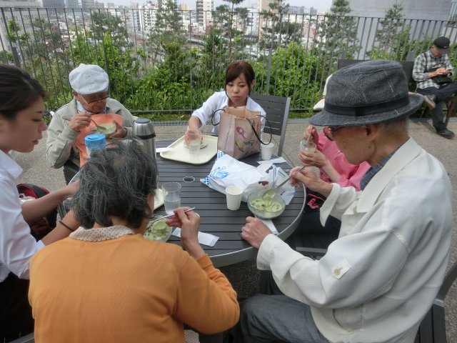 最後は5Fにある、墨田区の工芸品を展示する茶屋のようなところがあり、そこで美味しい美味しい白玉クリームあんみつなどをみんなで召し上がりました☆