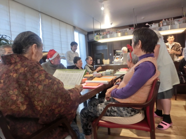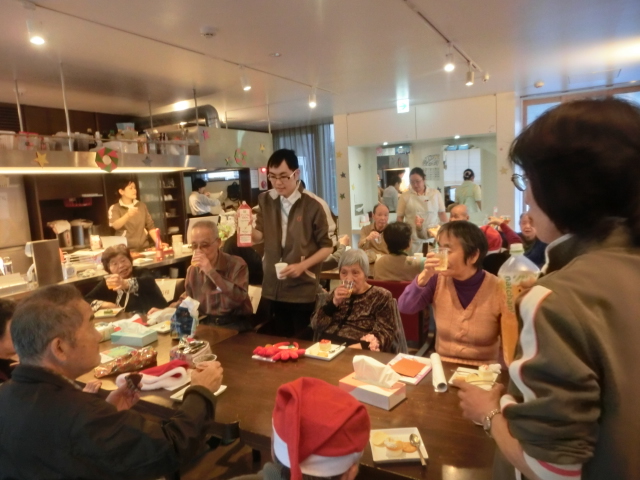 ラックの空平井☆クリスマス会☆ 2015年12月25日 / カテゴリー:ラックの空 平井 こんにちは!ラックの空平井です! 今月19日土曜日クリスマス会を開催しました☆ 朝の体操も欠かせませんね☆^^ そしておまちかね、子供たちによる歌や劇を楽しんで頂きました☆ そして、子供たちとのふれあい^^ 昼食はクリームシチュ~☆にボリュウム満点のからあげです! 午後はクリスマスの歌をみんなで歌い☆ ビンゴゲームで盛り上がりました!!サンタさんも登場!! ビンゴゲームでは、もれなくプレゼント☆ メリークリスマス!!来年もまた☆