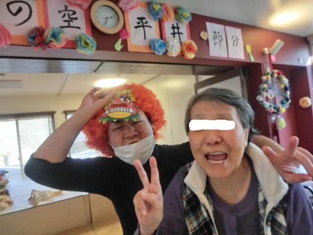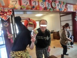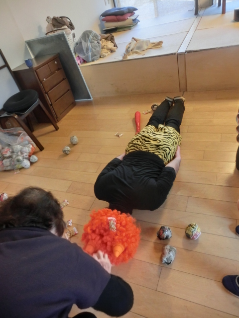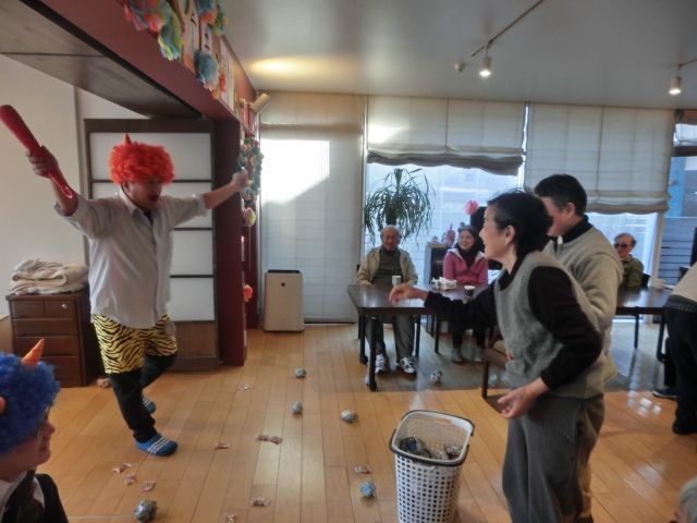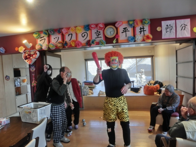 冬だ!!節分だ!!豆まきだ!! 2016年2月3日 / カテゴリー:ラックの空 平井 こんにちは☆ラックの空平井です♪ 今日は2月3日水曜日、『節分』ということで、毎年恒例の鬼さんを地獄から来て頂きました!! うぉおおおおお!!泣くおじいさん、おばあさんはいねぇかぁ~!! みなさん鬼に向かって豆を全力投球!!容赦しません!! さぁみんなで鬼をやっつけろ!!鬼は外!!福は内♪ みんなの思いが通じて鬼が遂に降参です!!『もう悪い事はしません~!!』と観念した様子です!! そしてなぜか鬼と記念撮影(笑) みなさんの無病息災を願って、鬼さんは去っていきました♪ 今年も元気にラックに遊びに来てくださいね~☆