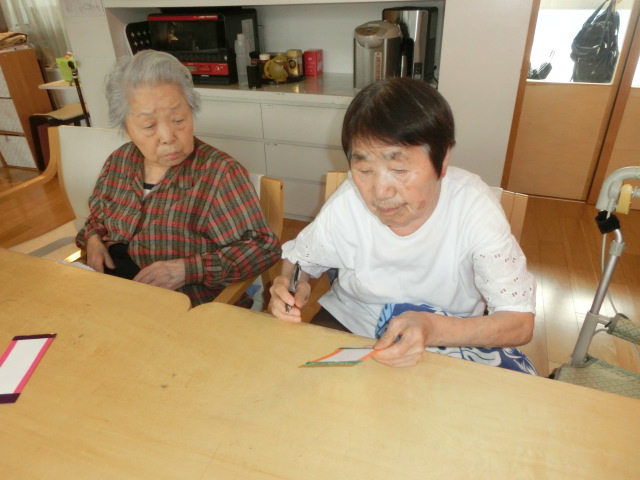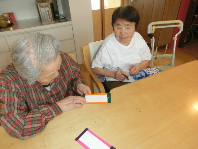 「ほら、七夕の願い事だよ。私書いたから、あんたも書きなよ~」