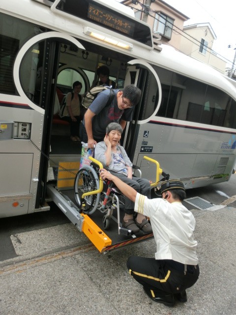 敬老会~パート1~ 2018年9月12日 / カテゴリー:ラックの花 平井 こんにちは!ラックの花平井です♪ 今年もこの季節が来ましたよ!ミッキーバスに乗ってお出かけしました ミッキーバスにはリフトがついているので車椅子の方でも安心して利用できます
