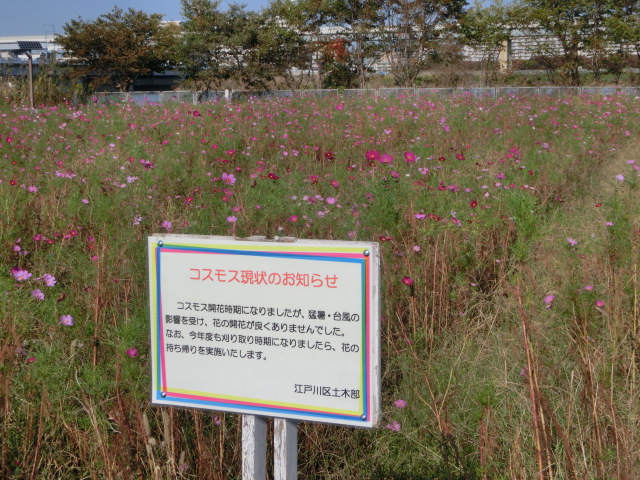 「猛暑」と「台風」により開花が良くないとの看板が...