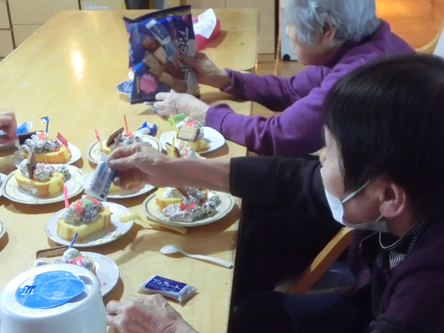 デコっちゃいます 2018年12月23日 / カテゴリー:ラックの花 平井 お昼ご飯のスキヤキを食べ終わり、一息ついたころ、☆花平井☆では... お皿にのったロールケーキがたくさん登場。 ボウルの中身を何やらかき混ぜています。 そ・し・て... あっという間にロールケーキをデコっちゃいます。 す・る・と... ほ~ら、ロールケーキがかわいいケーキに大変身(^^♪ しかも、キャンドル付き。 これって、もしかして??