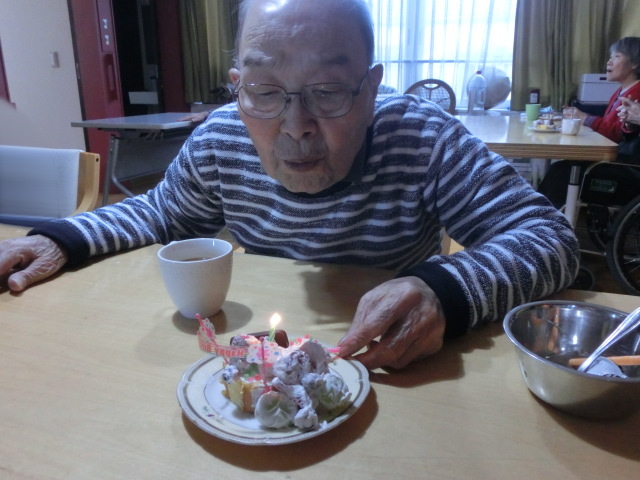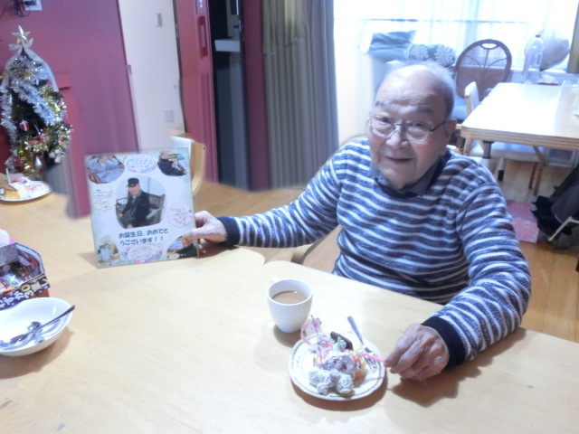 キャンドルを、一息で消してもらった後は、スタッフから記念の色紙を贈呈。