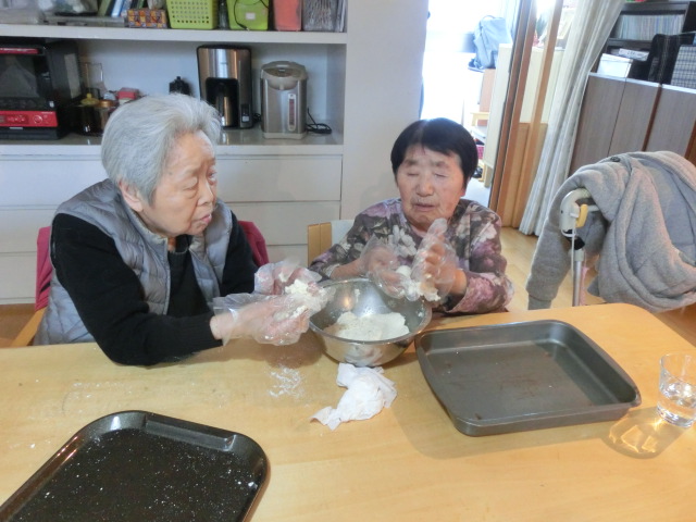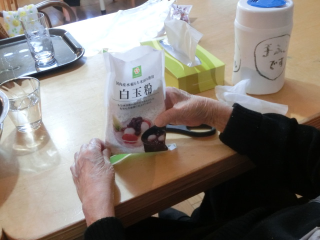 寒い日の出来事ー前編 2019年2月1日 / カテゴリー:ラックの花 平井 ラックの☆花平井☆、ある寒い日の昼下がり。 ん~、豆腐? ぬぬ~、白玉粉?? 2つとも、ボウルにインしてこねます。 丸めて... 茹でて... 豆腐入りのヘルシー白玉団子の出来上がり♪ さて、これから、もうひと仕事(^^♪ # 後編につづく...