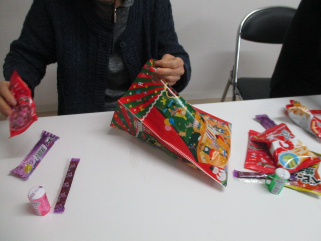 プレゼント♪ 2019年12月18日 / カテゴリー:ラックの空 東向島 こんにちは!空東向島です(^O^) いよいよ今週の土曜日は『クリスマス会』です☆ 今日は子供達とのプレゼント交換のお菓子を、 袋詰めしました!!!! 喜んでくれるかな~なんて会話もあったり・・ きっと!いや絶対喜んでくれますね♪ では\(^o^)/