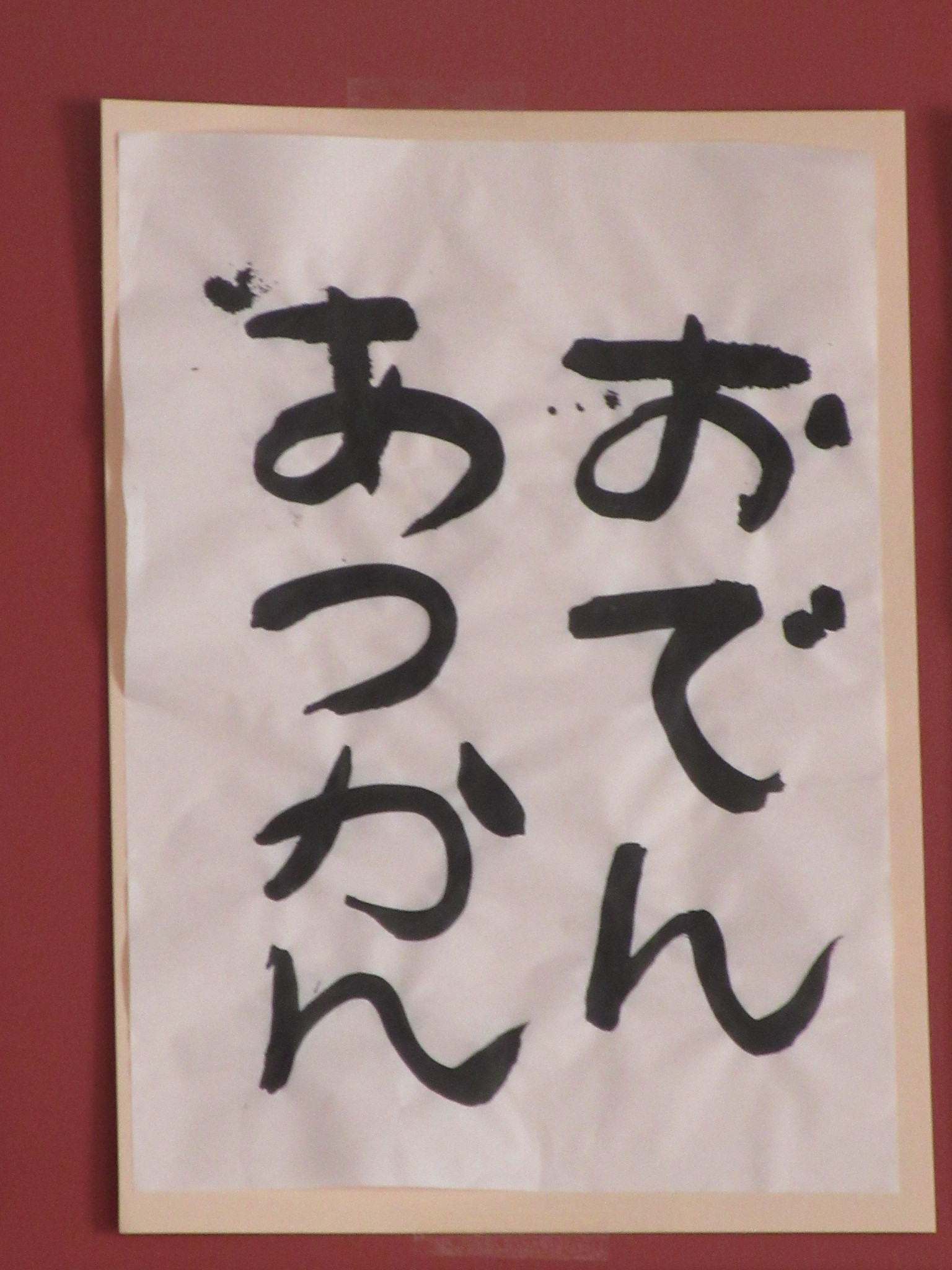 作品紹介~その伍:スタッフの作品~ 2020年1月15日 / カテゴリー:ラックの花 平井 ラックの☆花平井☆の書初めの作品紹介第五弾。 今回はスタッフの作品をご紹介♪ う~ん、 「おでん・あつかん」 寒い冬には欠かせないですね(^^♪ 冷たい木枯らしの夜に屋台で味わう「おでん」と「あつかん」。 あったまりますよね~ って、これ書初めで書くネタかい?? さて、新年早々から続けていた☆花平井☆の書初め作品紹介シリーズ。 このへんで、お開きとさせていただきます。 おつきあい、ありがとうございましたm(__)m # Fakeだったりして・・・