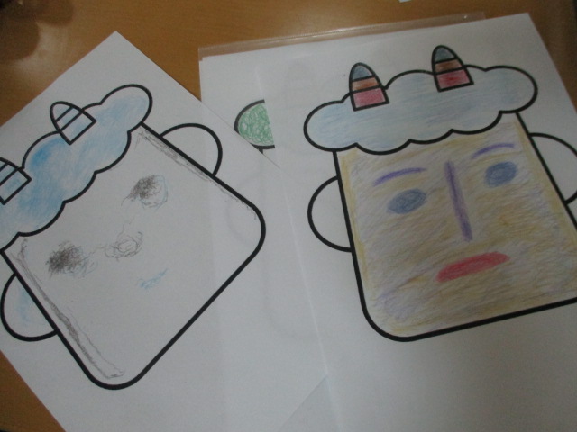みなさんに鬼の顔を書いてもらってます!