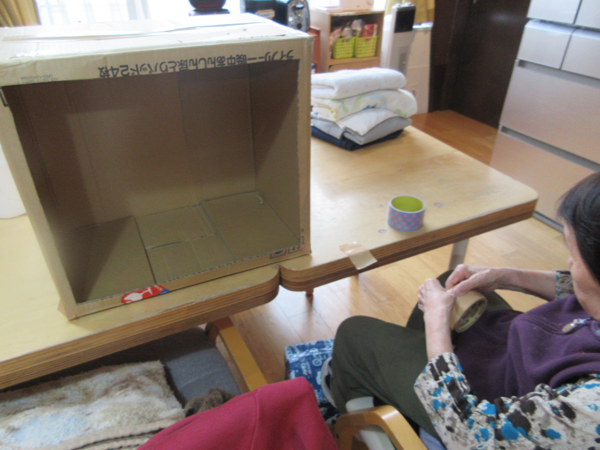 大きな箱を組み立てて、