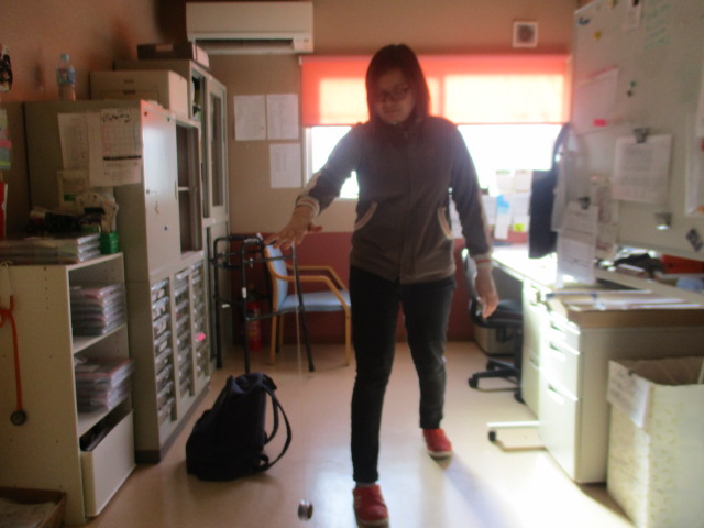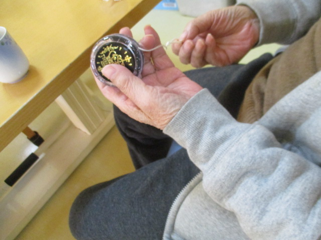 なつかしの・・・ 2020年1月22日 / カテゴリー:ラックの空 東向島 いつも閲覧ありがとうございます! こんにちは!ラックの空東向島です! 今日は懐かしのおもちゃで遊んでみました! ヨーヨーです!! さっそく興味津々のご利用者様 「ちょっとやってみてよ」と試しましたが・・・ とても難しくなかなか上手に出来ず、悩んでいると コツをご利用者様が教えていただきました! するとこの通り!! Sスタッフがカッコ良く出来たと喜び見せてくれました! せひ!今度お披露目して頂きましょう! ではヾ(*’-‘*)♪