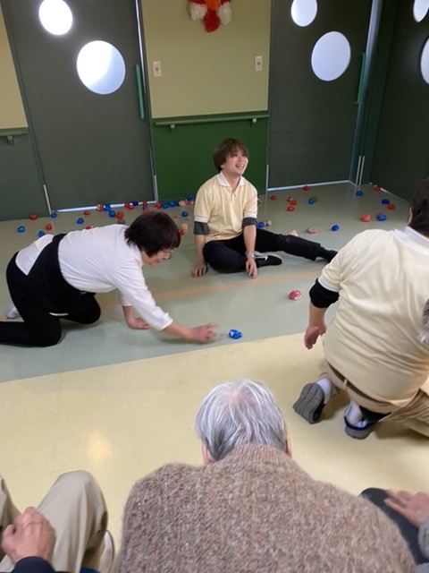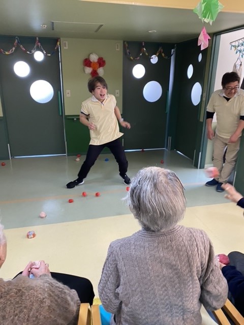 ご利用者様VSスタッフ 2020年2月24日 / カテゴリー:ラックの空 東向島 毎度閲覧誠にありがとうございます。 小規模多機能型居宅介護 ラックの空 東向島です。 今回はレクリエーションついてのお話です。 お昼を召し上がり、お腹が落ち着いた後 始りました。 ご利用者様VSスタッフ 〝PK〟 と名付けました。 そうです、サッカーで行っているアレです。 少し見えづらいですが、 スタッフさんの足元にガムテープが 貼ってあります。 ご利用者様が玉やボールを ガムテープより奥に 投げたり蹴ったりして それをスタッフさんが止めます。 始めは程よく止める事が出来ましたが… ご利用者様も 「負けないわよ〜!」と 容赦なくたくさん投げたり蹴ったり… 結果 こうなりました! もうヘトヘトですね! ご利用者様圧勝!! 負けたスタッフさんは 罰ゲームとして 犬の絵を描いていただきました! ラックの 小規模多機能型居宅介護サービス レクリエーションは、 如何に楽しんで体を動かしていただけるかを 考え精進しています。 では! \\٩( ‘ω’ )و //