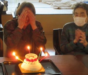 ご利用者様スタッフみんなでハッピーバースデーを歌い拍手でお祝い👏