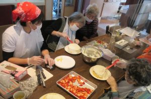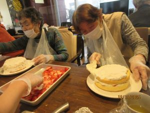通所された皆さんに早速お手伝いいただきクリスマスケーキ作り開始❣❣
