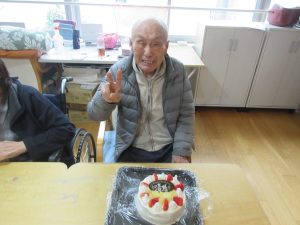 お誕生日おめでとうございます! 2026年4月23日 / カテゴリー:ラックの花 平井 こんにちは!ラックの花平井です❁ 2階では、今月こちらの利用者様が御年88歳のお誕生日を迎えられました♪ ケーキと一緒に笑顔で写真を撮らせていただけました! 来年もお祝いしましょう! それまでぜひお元気で♪